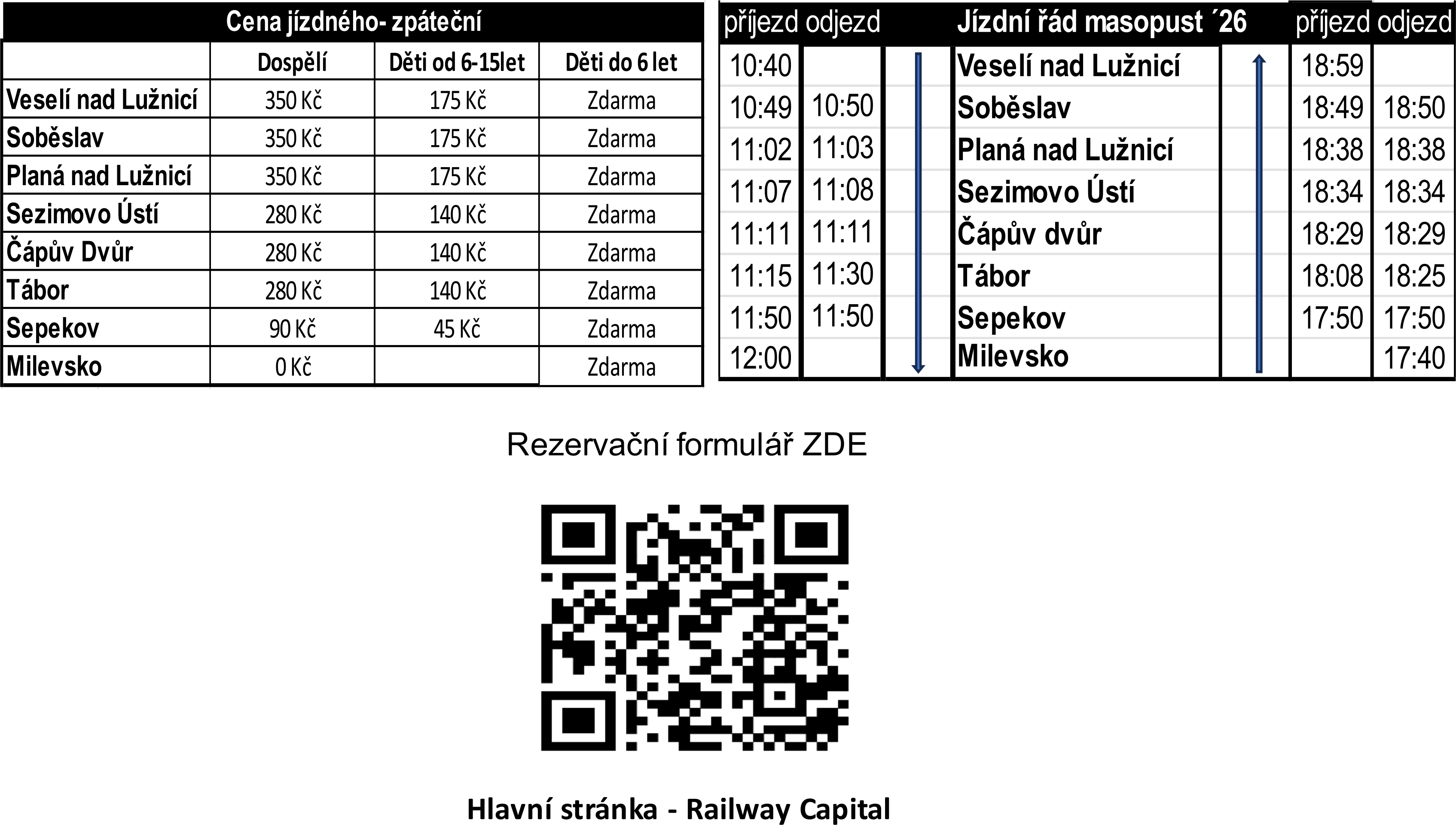 Chcete si užít retro atmosféru už během cesty na Milevské maškary? Nasedněte do vlaku a nechte se dovézt přímo do centra dění!